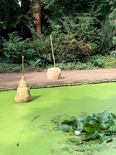 Ich freue mich auf das Wagnis meiner geteilten Skulptur im und am Seerosenteich.