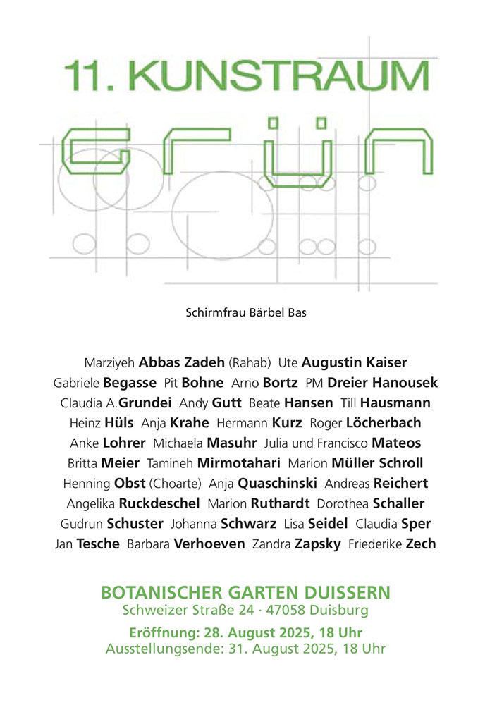 Eröffnung des 10. KunstraumGRÜN am 23.8.2024 um 18.00 Uhr im botanischen Garten Duissern.
