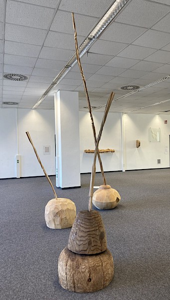 Ich zeige die Skulptur "Waterbeing" von 2022 und die Installation "Denn als ich in's Weben der Wolken geseh’n", ein Gemeinschaftswerk mit meiner Kollegin Angela Hiß.
